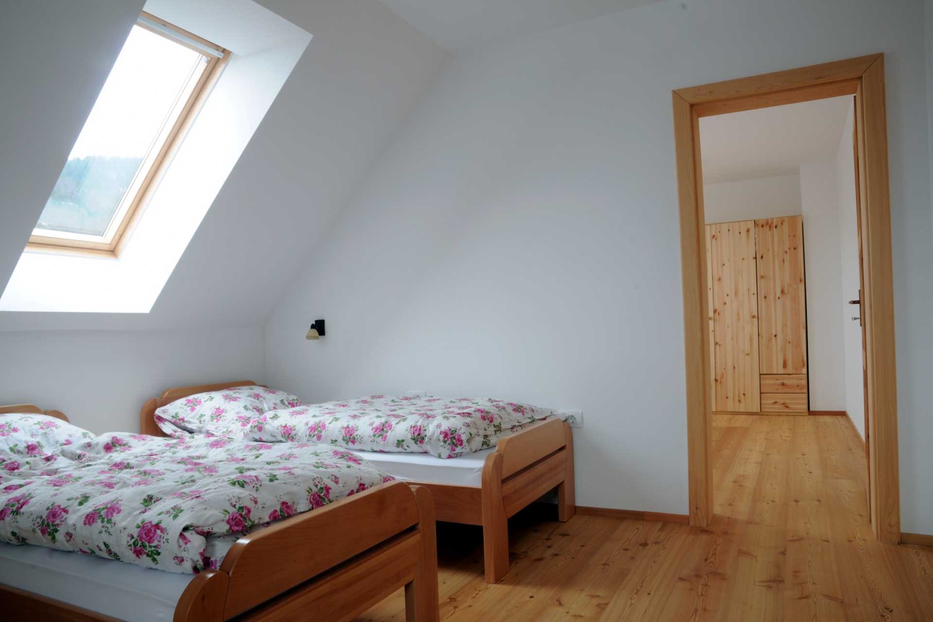 - Spalnica 4 (3 ležišča: enoposteljna ležišča)